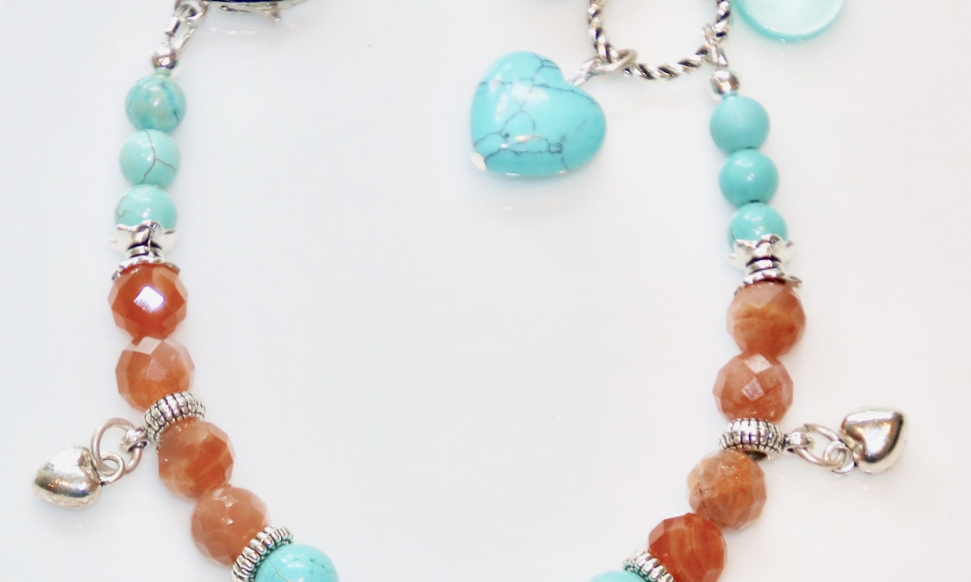 Armcandy gemaakt van facetgeslepen zonnesteen edelstenen en turkoois stenen.
