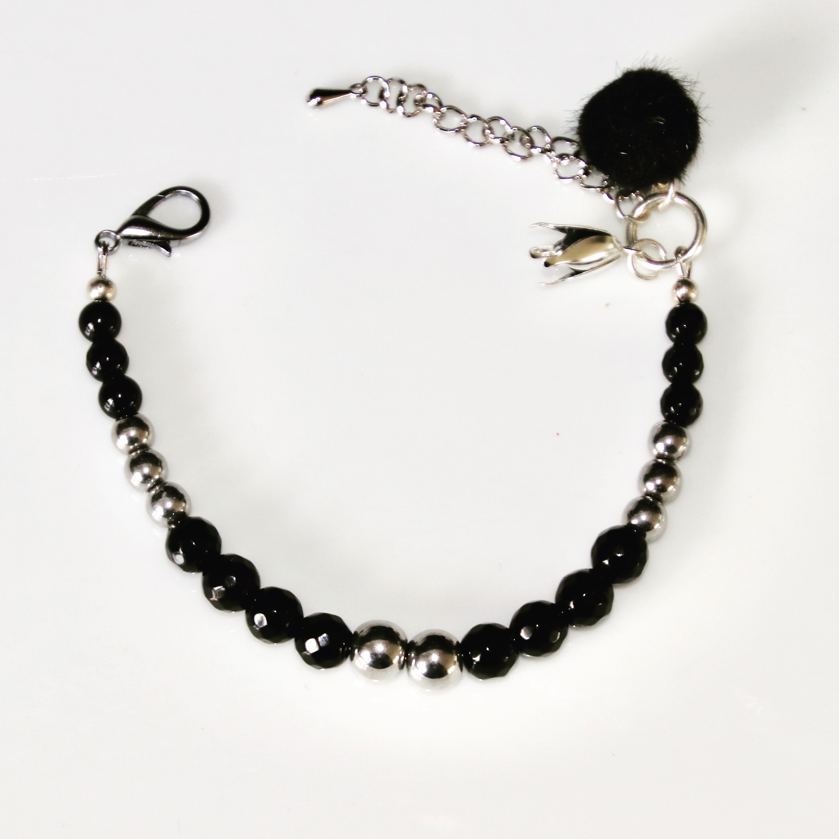 Armcandy met zwarte facet geslepen onyx en zilverkleurige accenten. In elke lengte zetbaar